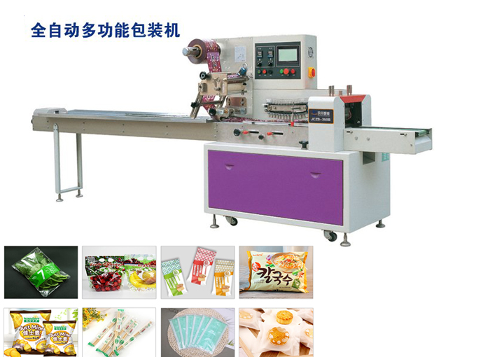 适用于蔬菜、水果、糖果、面包、饼干、巧克力、药品、月饼、米通、雪饼、日用品、工业零件、纸盒或者托盘等各类有规则物体的包装 选配装置:打码机(热打印生产日期、批号)、打孔装置、连包装置(袋子多连包)、充气装置(氨气、空气、氧气等)、插角装置、排气装置、花刀/平刀、易撕口装置等.(圆孔、针扎、凸孔)